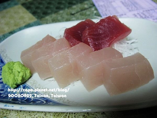 綜合生魚片(旗魚鮪魚),130元,肉質算不錯。