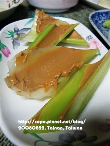 就是在芹菜上面塗滿花生醬,新口感。